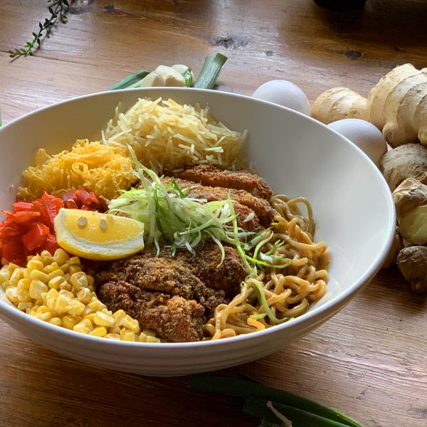 Panko breaded and fried chicken cutlet with a flavorful brown curry sauce. Served with fukujinzuke and slaws. Thin noodles. **Contains chocolate**