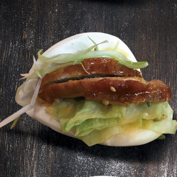 Steamed buns topped with Chashu (braised pork), spicy mayo and scallions.